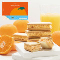 和歌山県産の温州みかんの果汁を使用したみかんパウダーと、オレンジピールを練りこんだみかんホイップチョコをさくさくのクッキーでサンドしました。