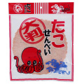 甘藷澱粉(国内製造)、たこ、えび、ソース、食塩、ごま、青さ、蛋白加水分解物、一味唐辛子、香辛料/加工澱粉、調味料(アミノ酸等)、甘味料(ステビア、カンゾウ)、膨張剤、着色料(黄5、赤3、カラメル色素)、酸味料、香辛料抽出物、(一部にえび・小麦・ごま・大豆・りんごを含む)