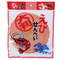甘藷澱粉(国内製造)、えび、醤油、食塩、砂糖、ごま、蛋白加水分解物、みりん、一味唐辛子/加工澱粉、調味料(アミノ酸等)、甘味料(ステビア、カンゾウ)、着色料(黄5、赤3)、(一部にえび・小麦・ごま・大豆を含む)